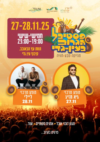 מיקום: קיבוץ עין גדי הייחודי (מתחת לעץ הבאובב), בלב אחד המקומות המרהיבים בישראל – בין הרי מדבר יהודה לים המלח במרכזו של הגן הבוטני